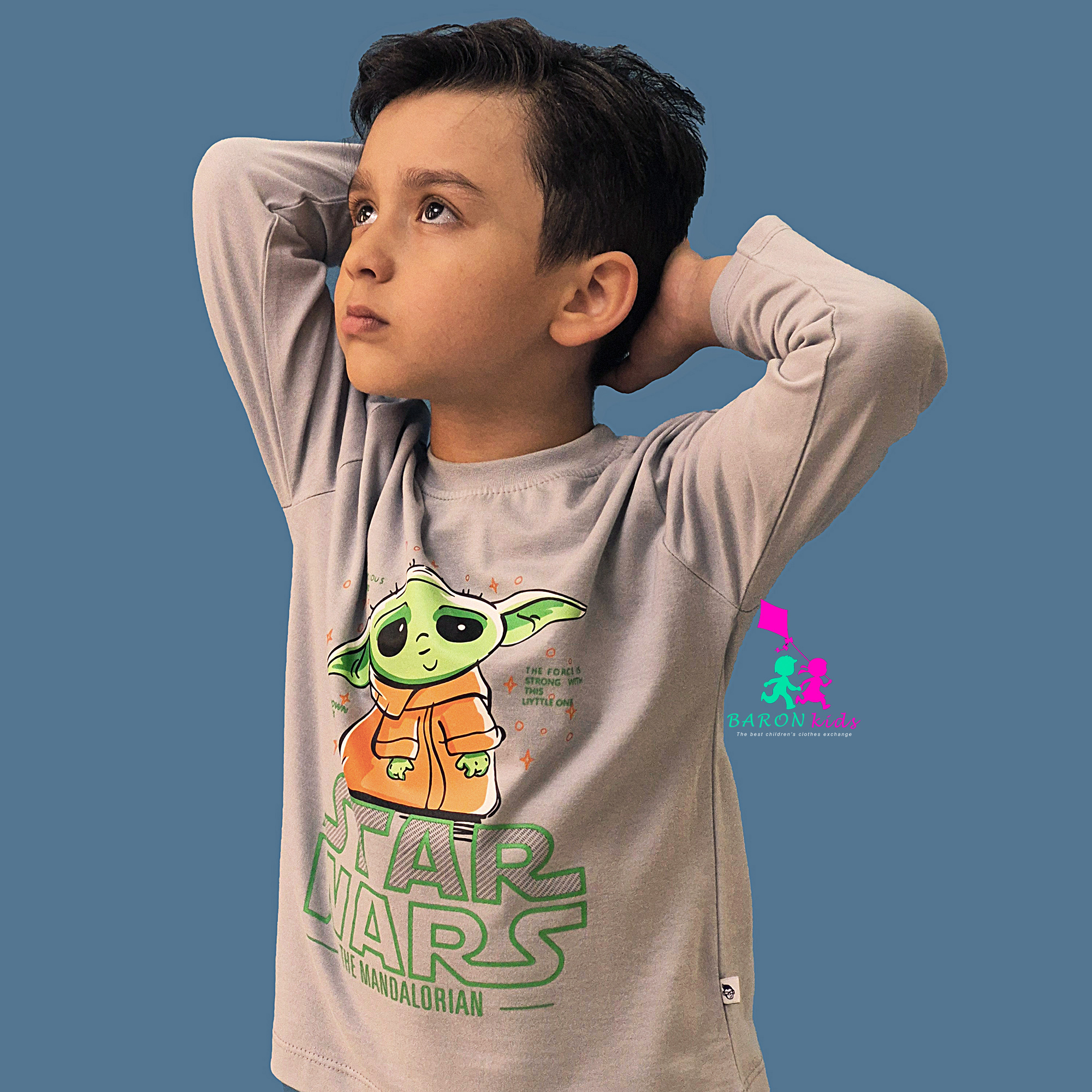 تیشرت چاپدار آستین بلند طرح بی بی یودا