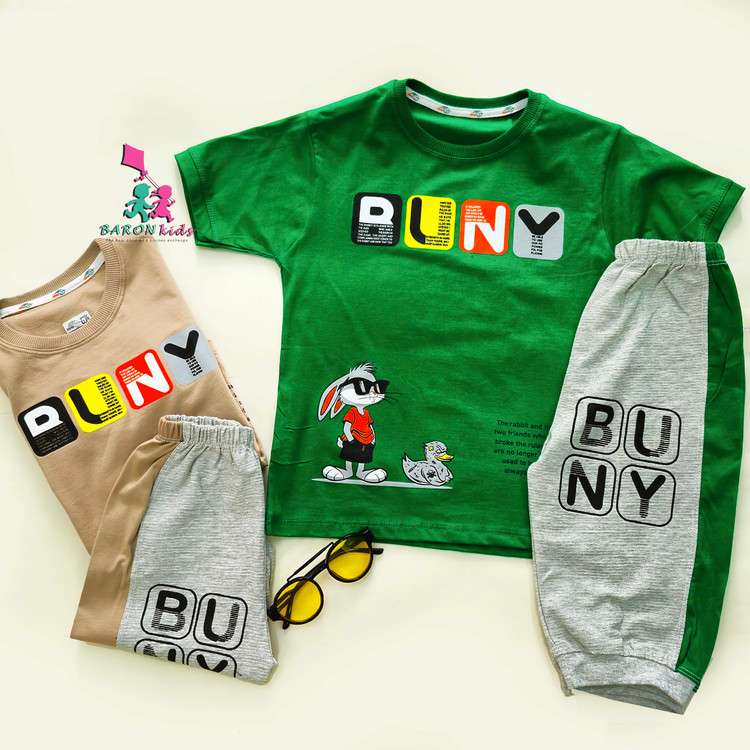 تیشرت چاپدار طرح خرگوش و شلوار ملانژ کبریتی چاپدار