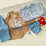 تیشرت چاپدار و شلوارک طرح دوستی خرگوش و خرسی